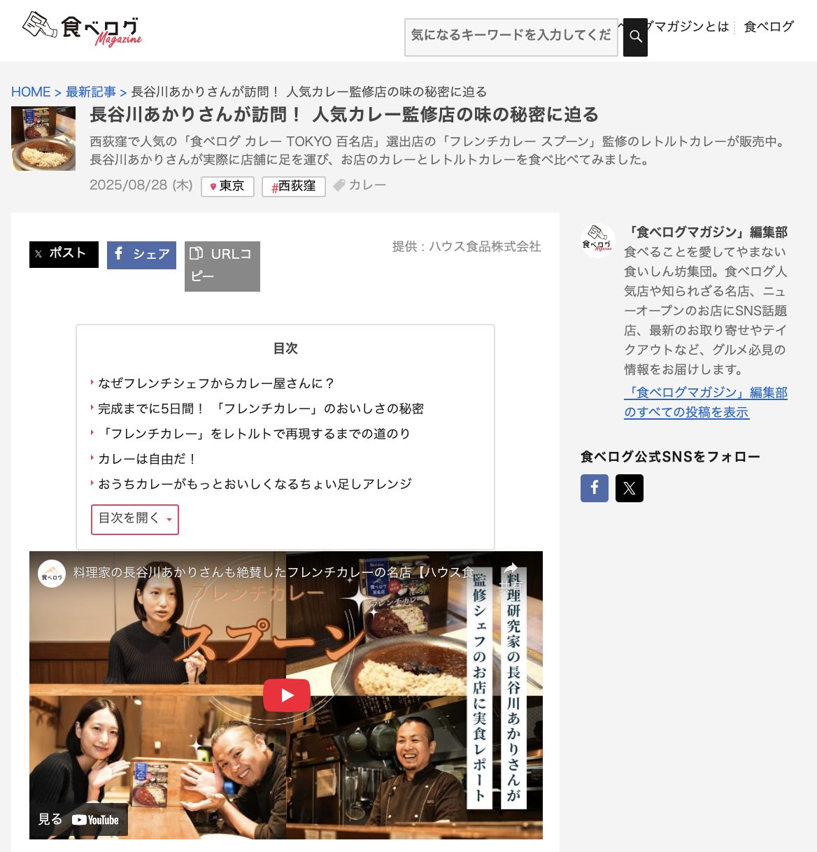 徳間書店 『食楽』タイアップ記事
