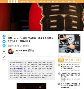 スクリーンショット 2021-04-28 16.38.21 2021年4月28日2021年4月28日 編集プロダクション Fleet(フリート) > works > フリート横田 > 講談社:現代ビジネス:浅草・ホッピー通りで50年以上店を営む在日コリアン2世「怒涛の半生」記事制作 > スクリーンショット 2021-04-28 16.38.21